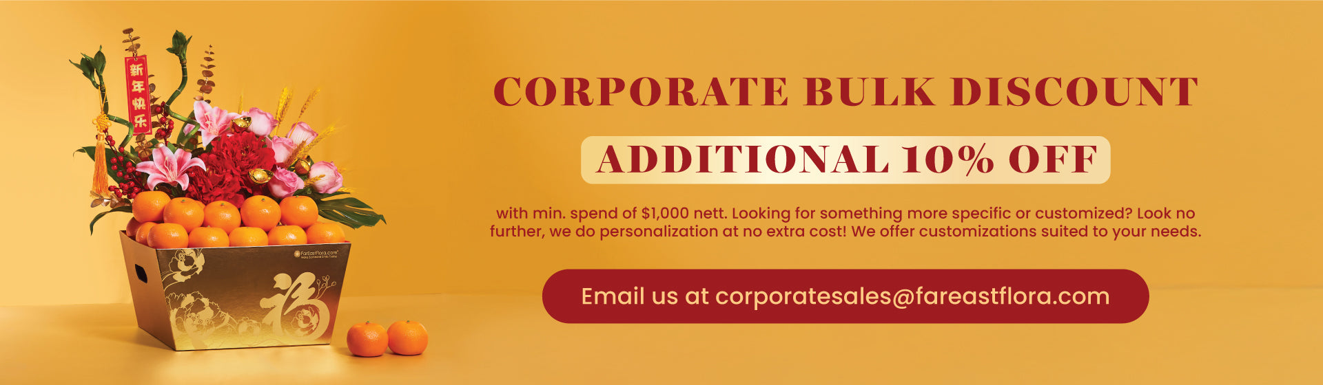 At FarEastFlora.com, we strongly believe that our flowers, gifts, and hampers add a touch of finesse to any occasion or celebration. So whether its birthday flowers or birthday cakes, congratulatory flowers, a baby hamper to welcome new-born, customized corporate gifting, or wedding flowers, we have them all. Be spoiled for choice with our wide range of over 1,000 flowers and hamper options available on our website. And if you can‘t find something you fancy, our friendly customer service team is just a call or email away to assist you with customization. Setting our sights on new ventures, we have expanded our product offerings to include a floristry school CreativeWorkz Floristry Academy and Singapore's best weekly fresh flower subscription box service FreshBlooms.co.