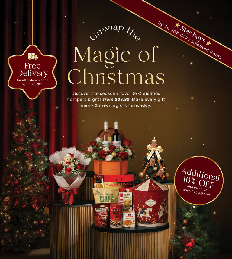 Enjoy free delivery before 11 Dec, and for bulk orders, 10% off with min. $1,000 nett spend and free personalization with 10 pcs and above.